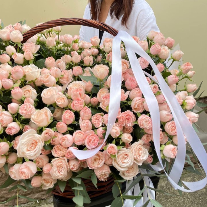 Корзина из 101 пионовидной розы