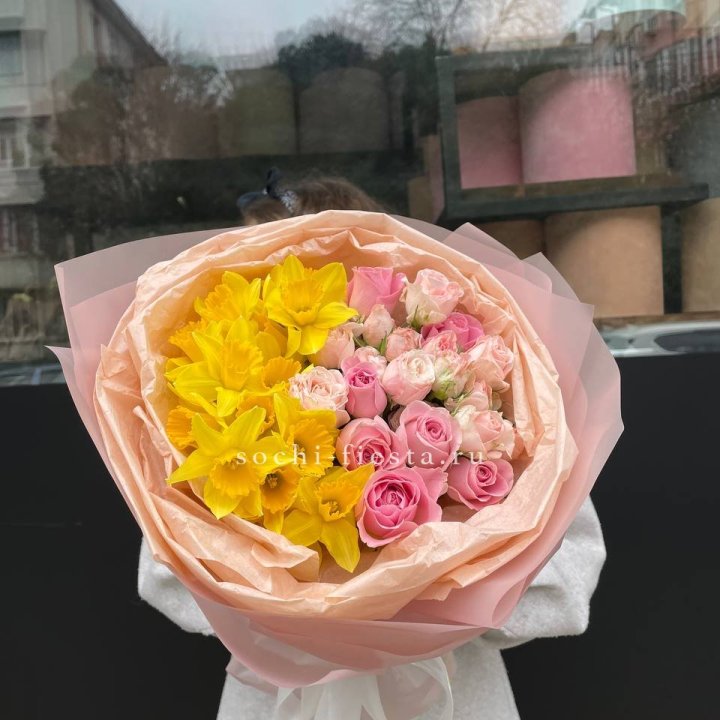 Букет роз и нарциссов