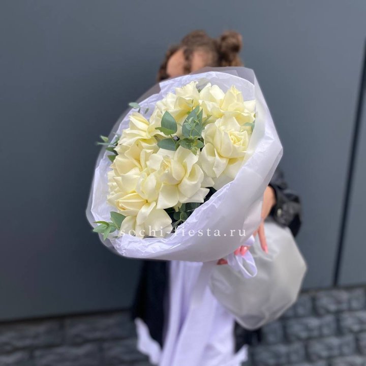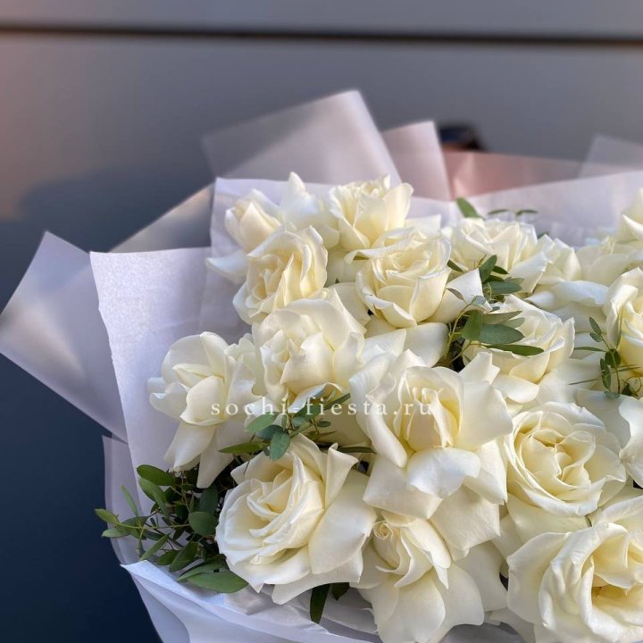 Пышный букет из белых роз