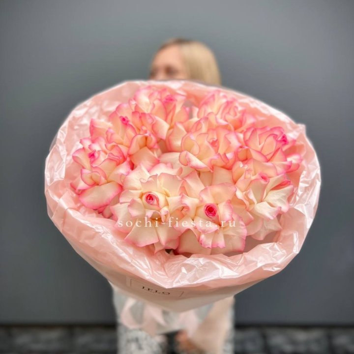 15 бело-розовых роз
