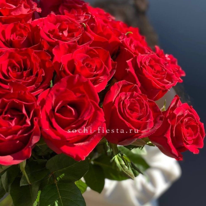 35 красных роз под ленту