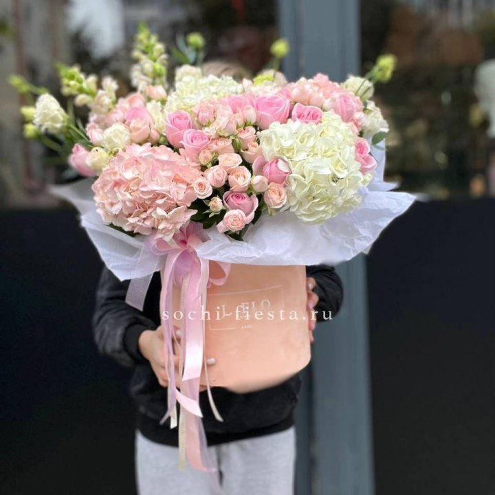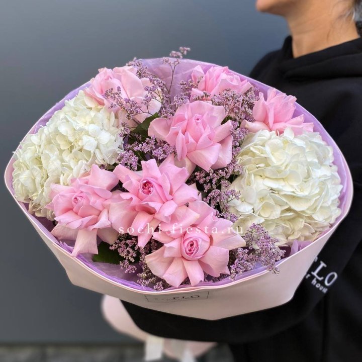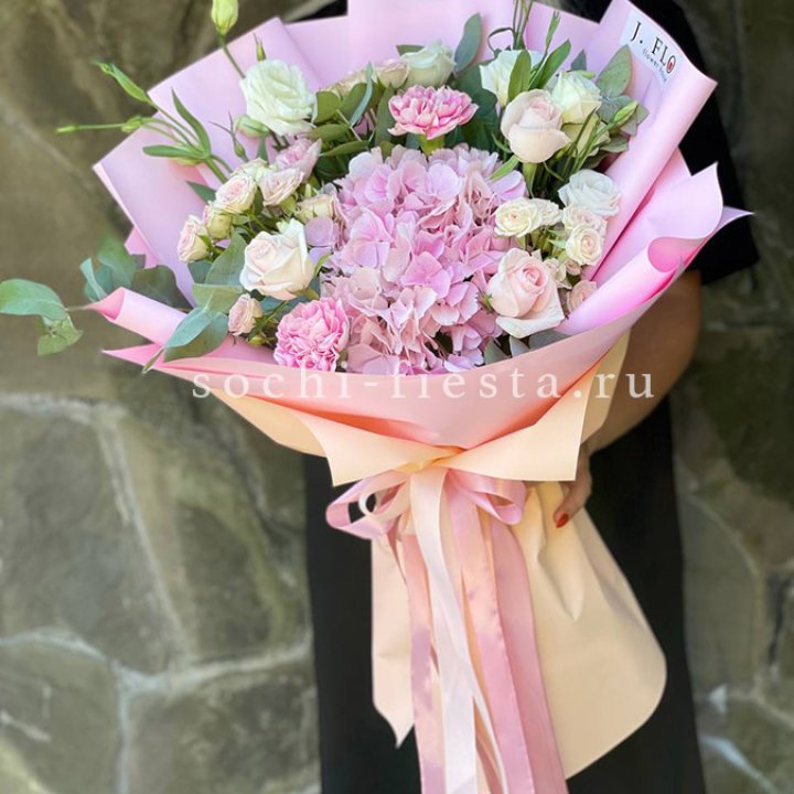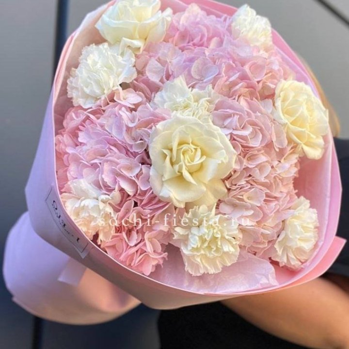 Букет гортензии и роз "Тиамо"