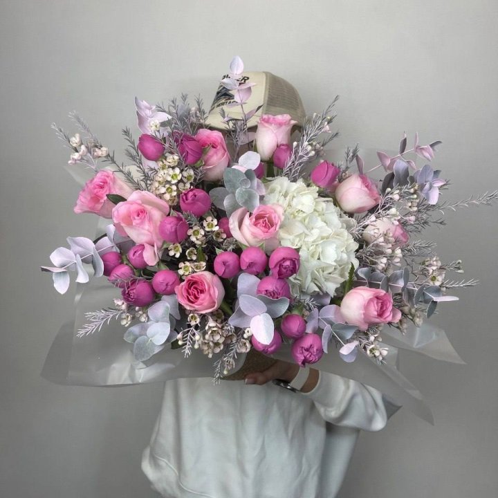 Букет кустовые розы и гортензия