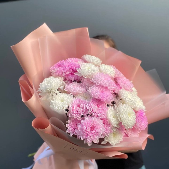 Букет бело-розовых хризантем
