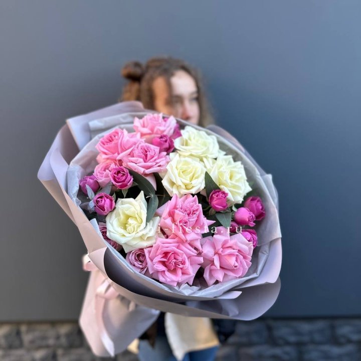 Букеты из розовых роз