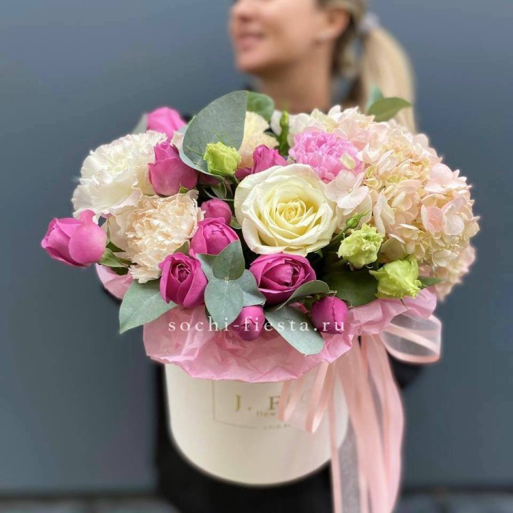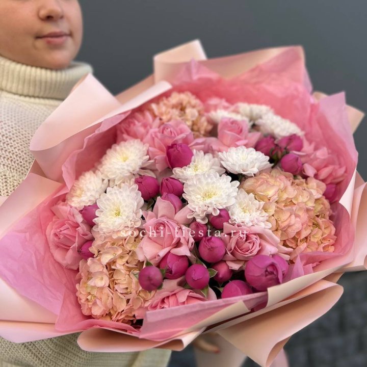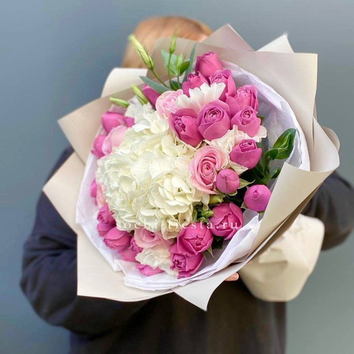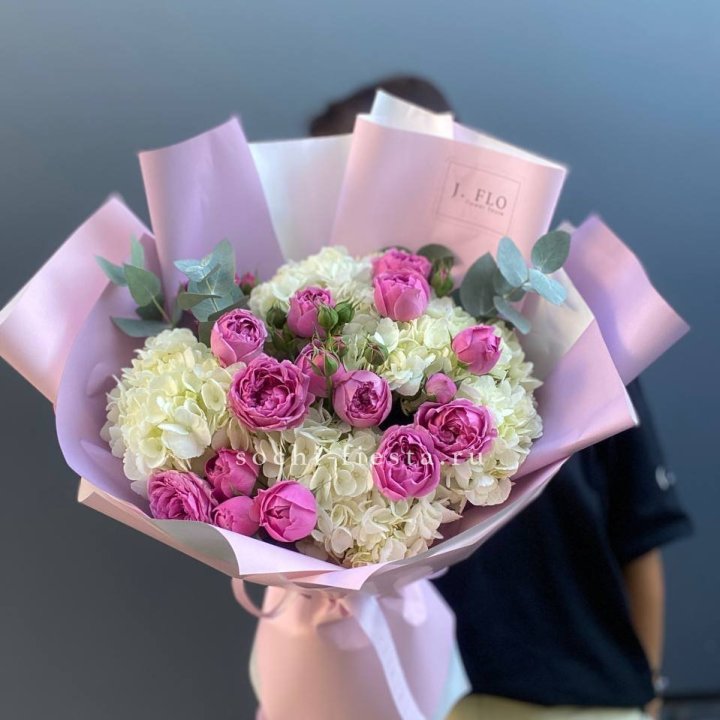 Букет белых гортензий и пионовидных роз