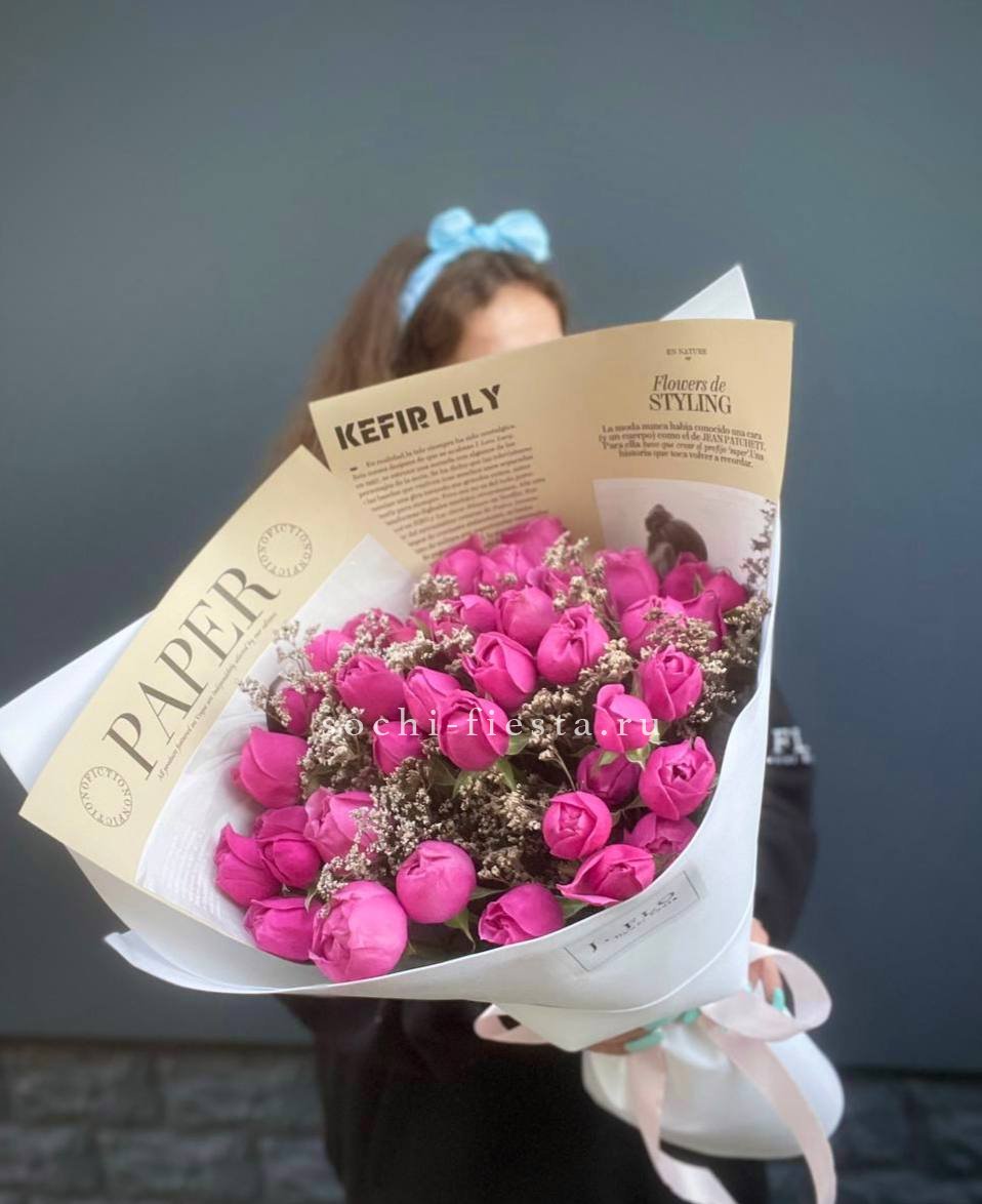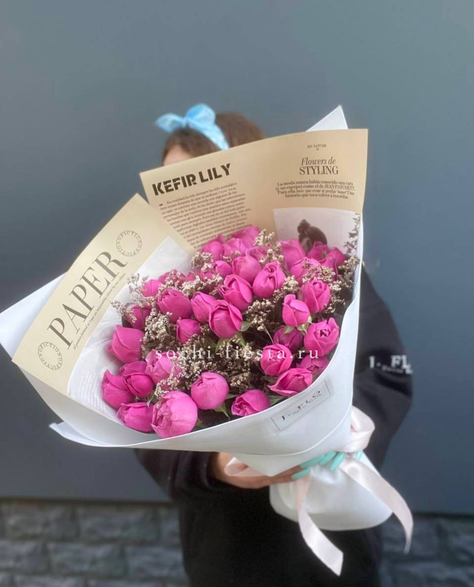 розы - 55 шт., лента, авторская упаковка.