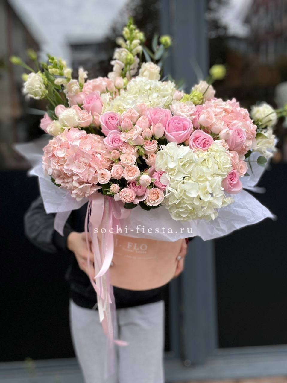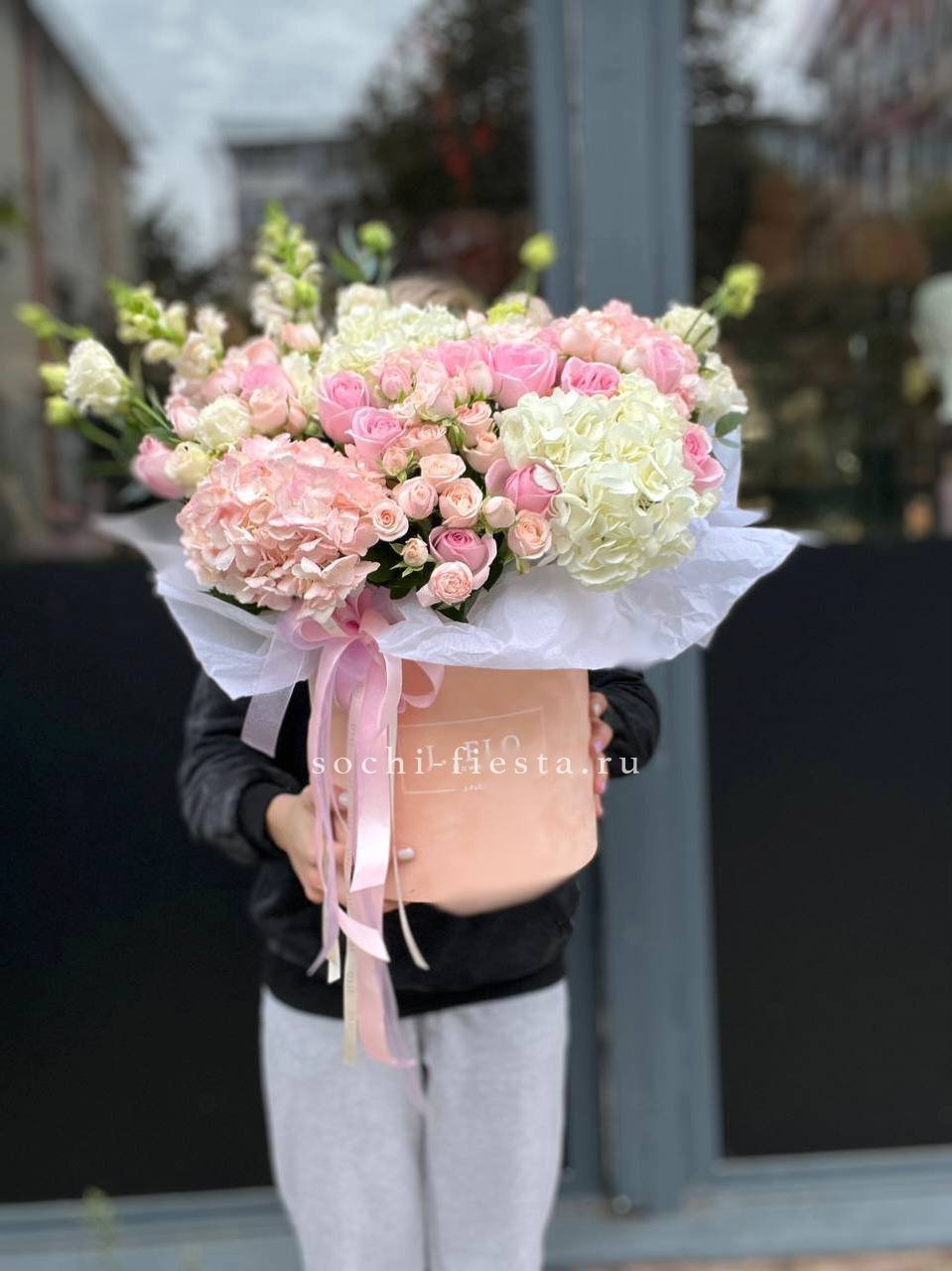 гортензия- 29 шт., дизайнерское оформление По желанию заказчика, композицию можно оформить в корзину.