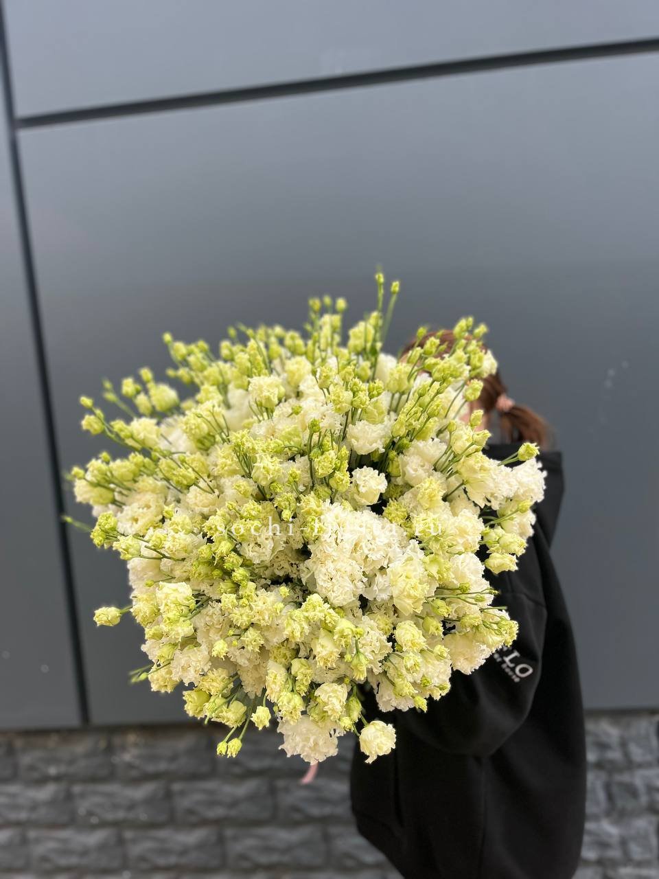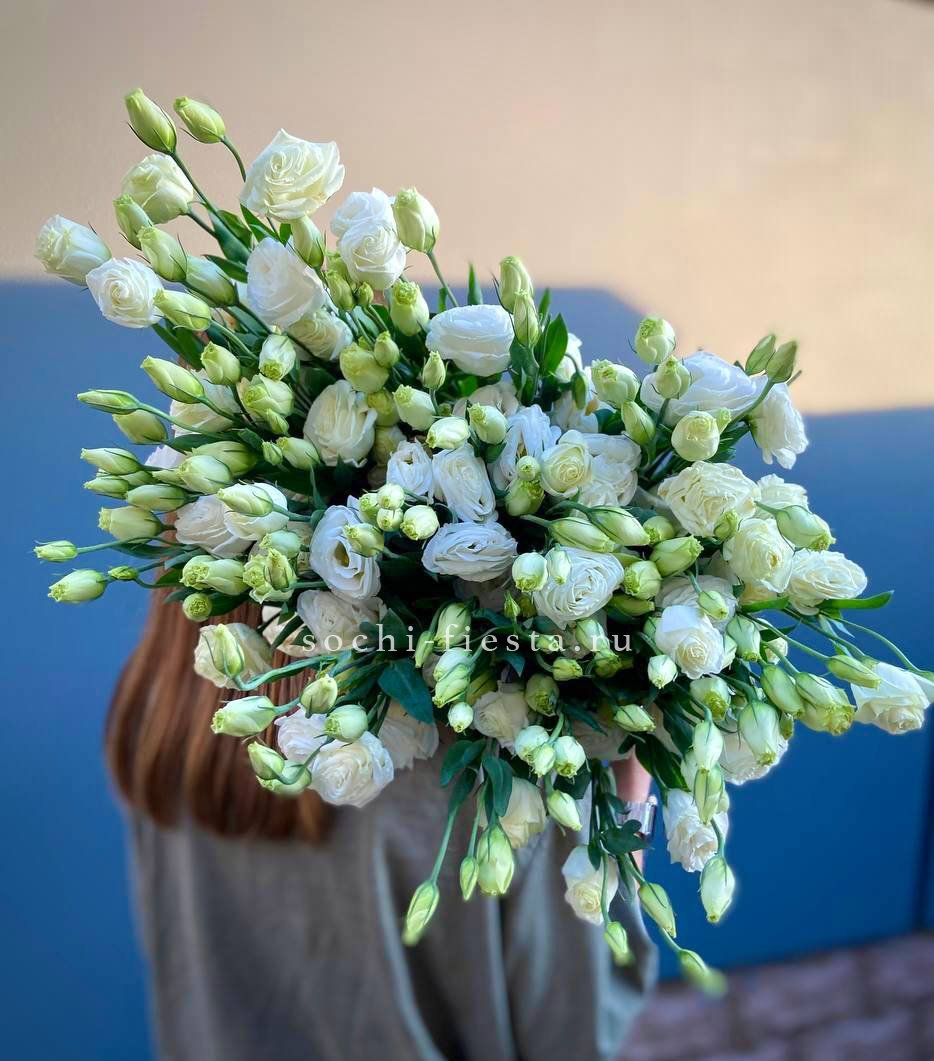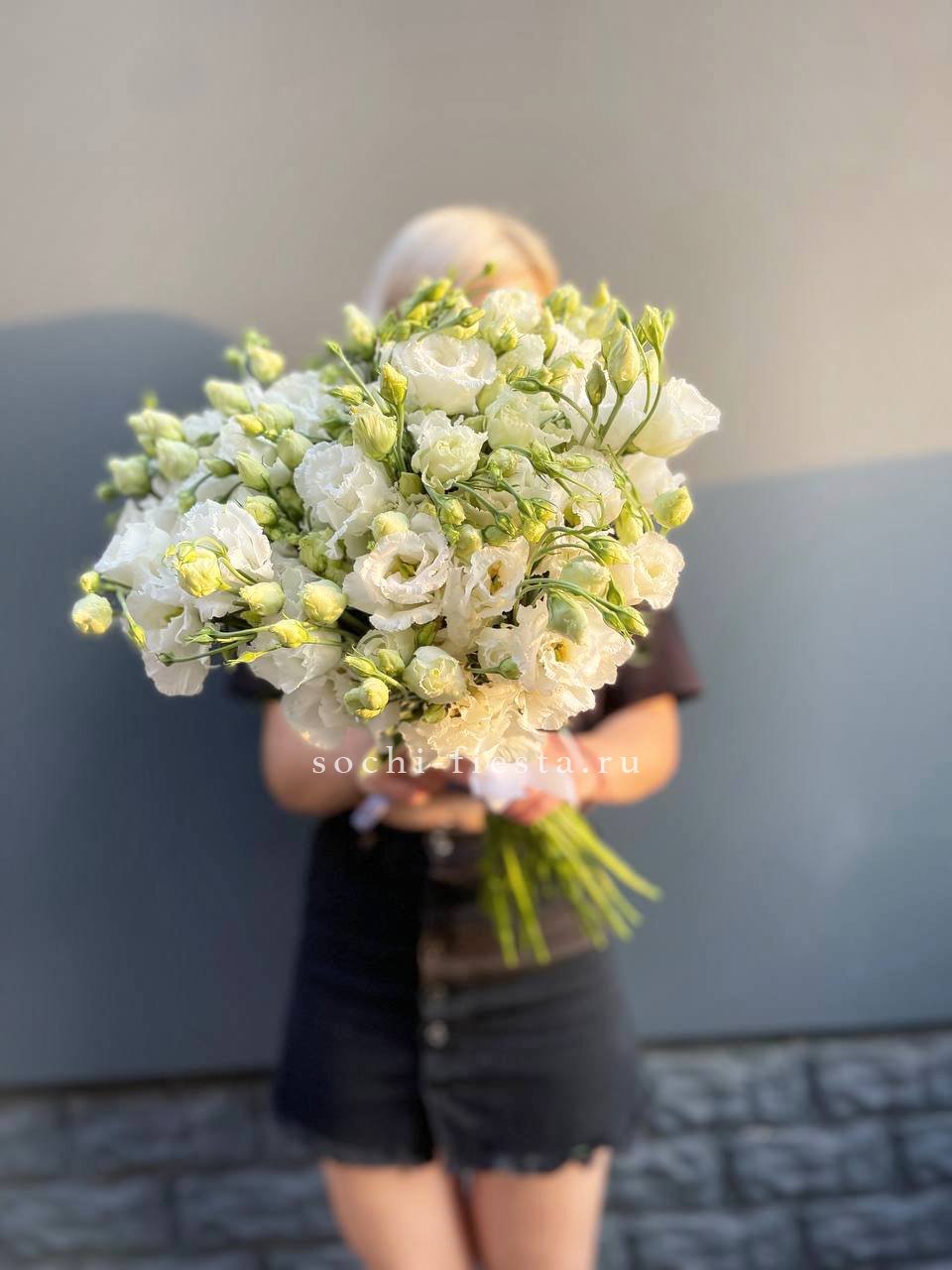 Охапка эустомы в свободной упаковке – чистая форма без усложнений. Веточки располагаются свободно, создавая лёгкий ритм и воздушное присутствие. Монобукет для современного интерьера и минималистичной эстетики.