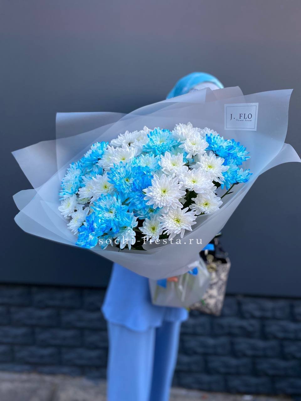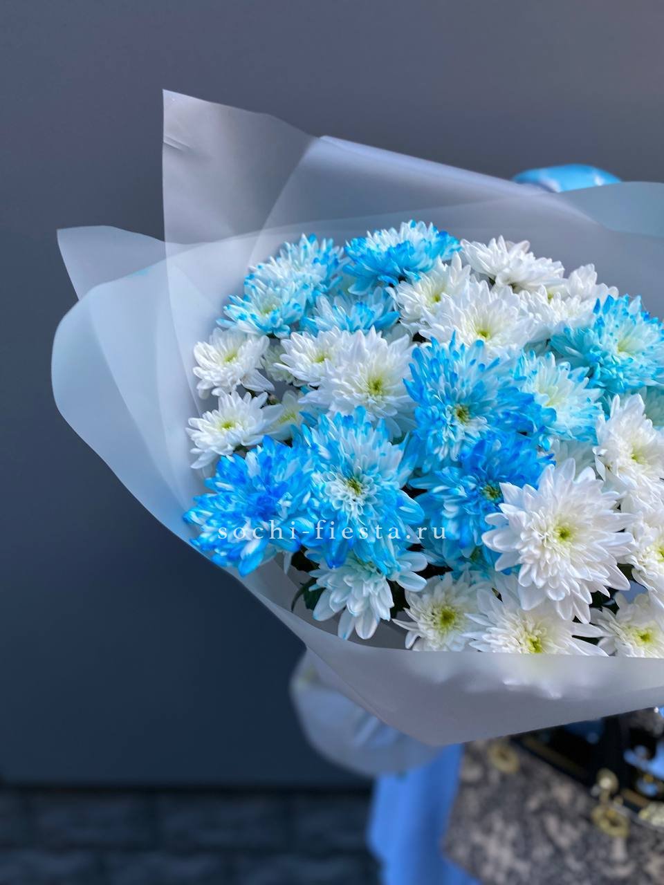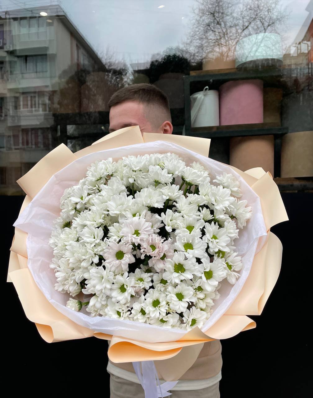 хризантема кустовая - 19 веток, лента, дизайнерская пленка.