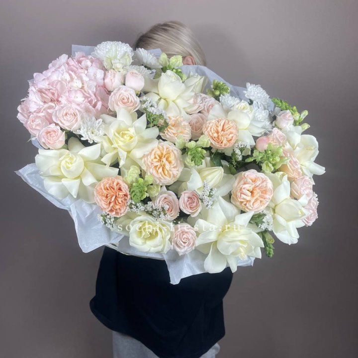 • Редкий состав — David Austin, ранункулюс, анемоны, уральские пионы в сезон.