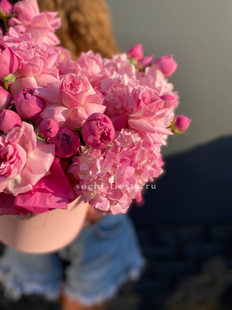 мисти баблс, гортензия, розовая роза, коробка размер 16D.