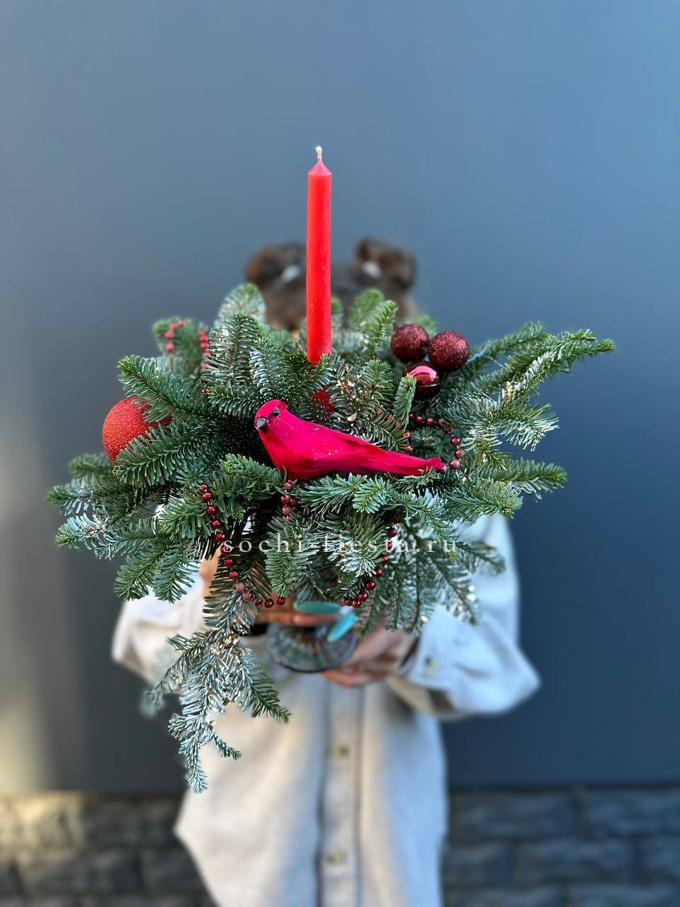 нобилис, цилиндр, оазис, свечи, новогодние игрушки, декор ВНИМАНИЕ! Готовая композиция (декор) может иметь незначительные внешние отличия от примера на фотографии.
