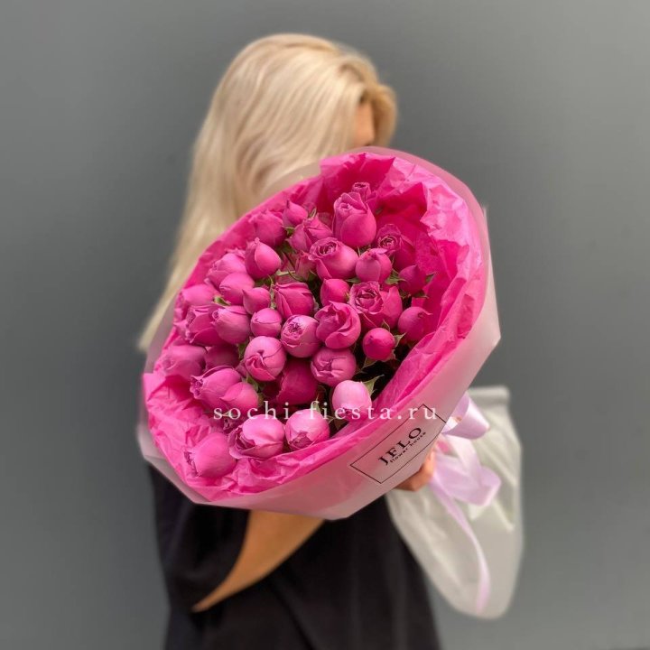 Заказ оформляется на сайте, в Телеграм-канале или по телефону. Моно-букеты 25 и 51 роза всегда в наличии — собираются за 15-20 минут до выезда курьера. Специфические сорта и длинные стебли — предзаказ за 2-3 дня.