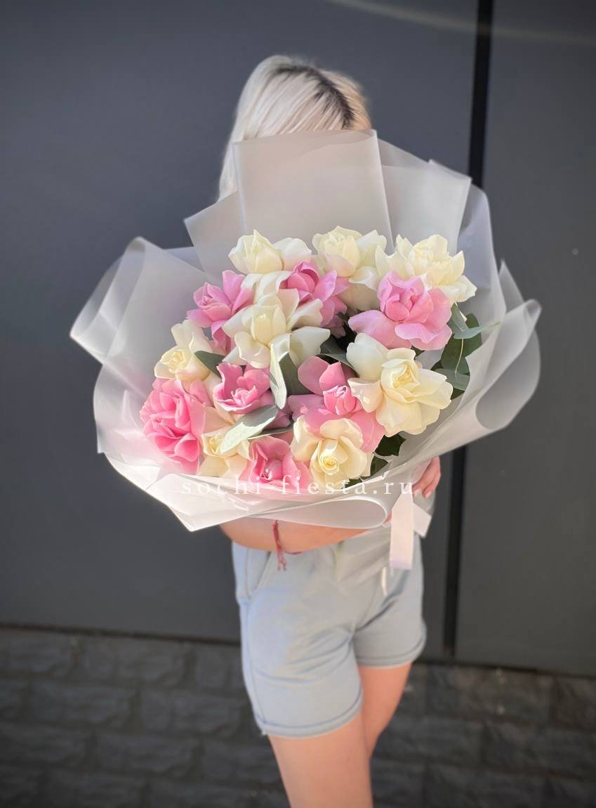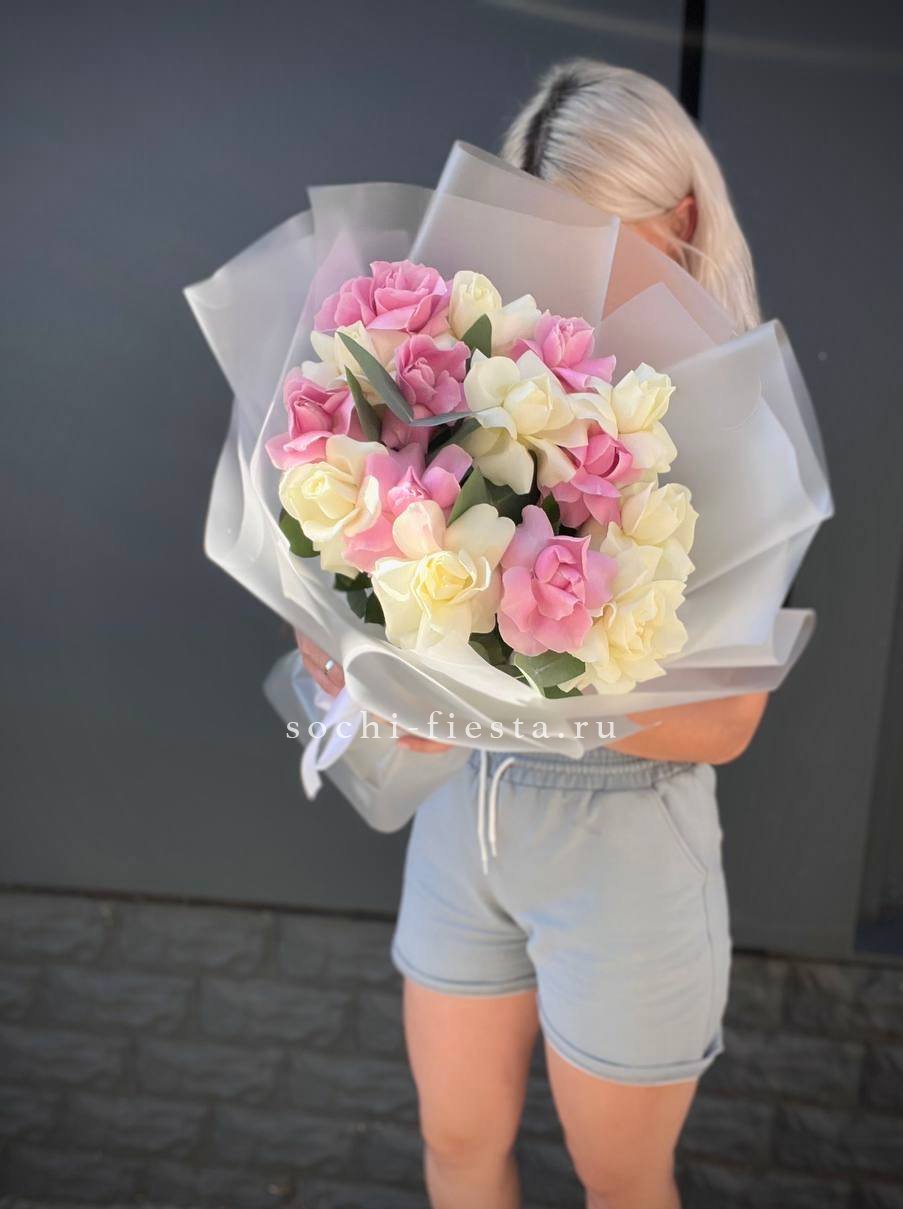 Для заказа товара "15 бело-розовых роз" с доставкой в Челябинске нажмите в корзину