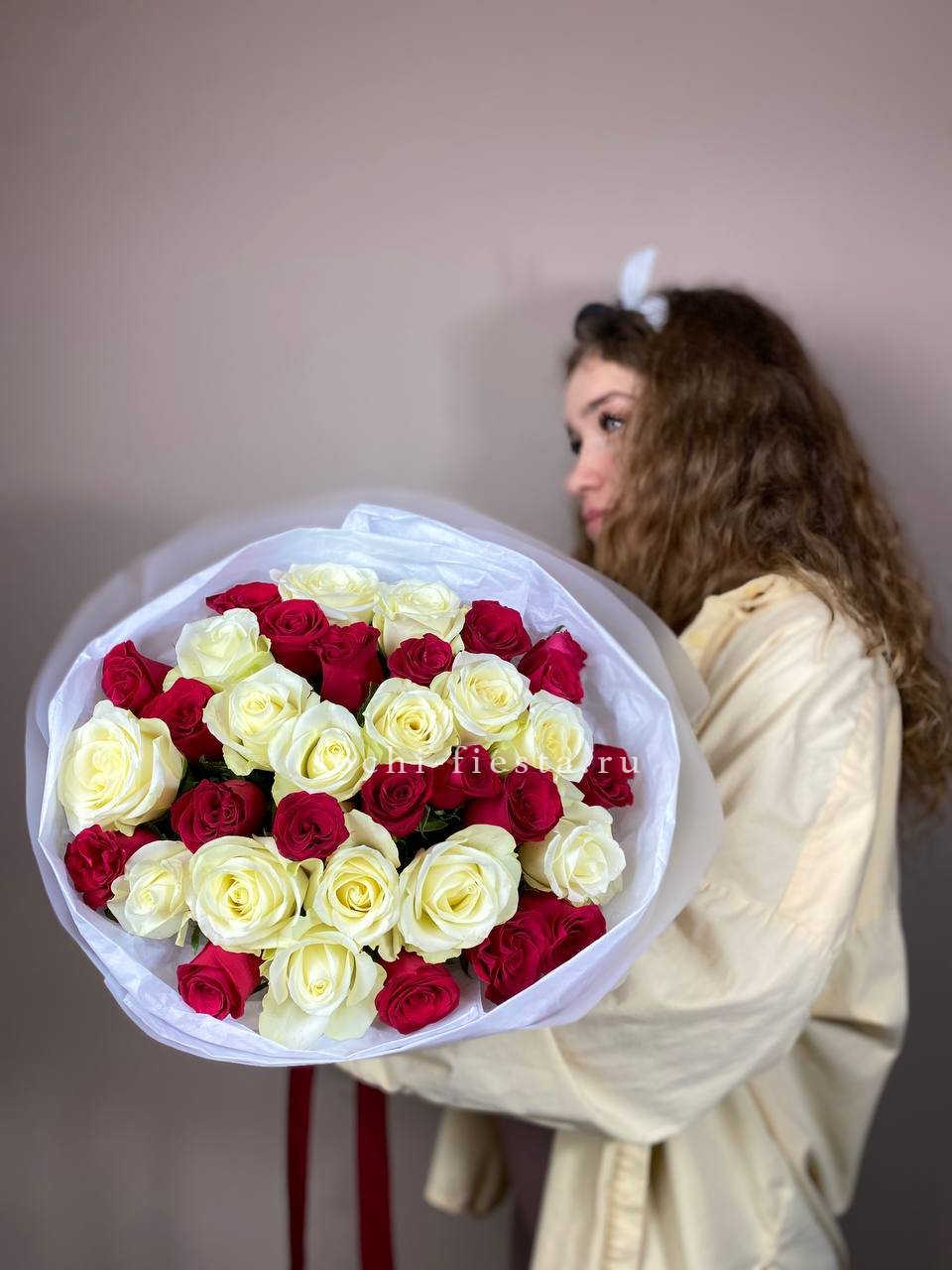 Для заказа товара "Букет из красных белых 35 роз" с доставкой в Челябинске нажмите в корзину