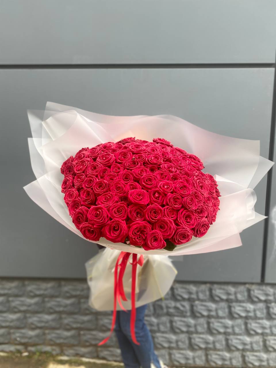 Букет из 101 высокой красной розы — это символ абсолютной преданности, роскоши и глубоких чувств. Такая композиция считается непревзойденным подарком для самых значимых моментов в жизни.