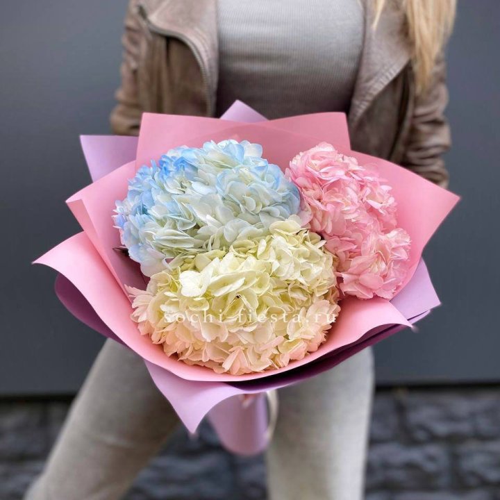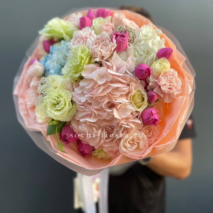 Главные летние хиты — гортензия, эустома, лаванда, ранункулюсы. Гортензия в белой и голубой палитре востребована на свадьбы. Эустома работает круглый год в смешанных композициях.